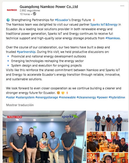 Namkoo visita a Sparks IoT & Energy en Ecuador | Alianza de Energía Solar